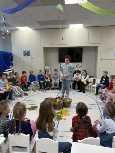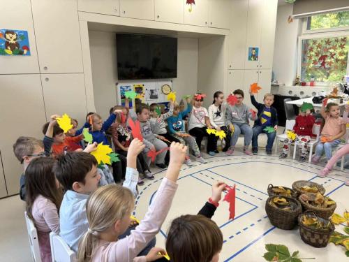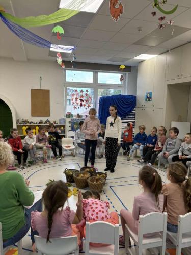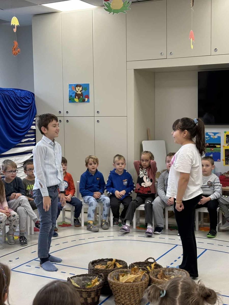 A Jovan Jovanović Zmaj Általános Iskola negyedik osztályos tanulói látogattak el hozzánk Sztarek Elenóra tanítónő vezetésével. Az iskolások őszi versekkel, énekekkel és az évszak terméseivel kapcsolatos játékokkal kedveskedtek az Eper csoport iskolaelőkészítőseinek. Zárásképpen pedig őszi leveleket színeztek kicsik és nagyok egyaránt.