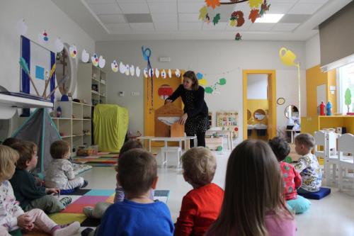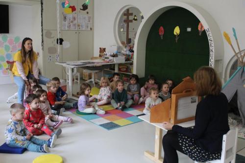 Omerović Heléna, a Szabadkai Könyvtár munkatársa látogatott el ma a Füge és a Ribizli csoportba A gyermekeket egy papírszínházas történettel a lepte meg, valamint a könyvek birodalmába csalogatta.