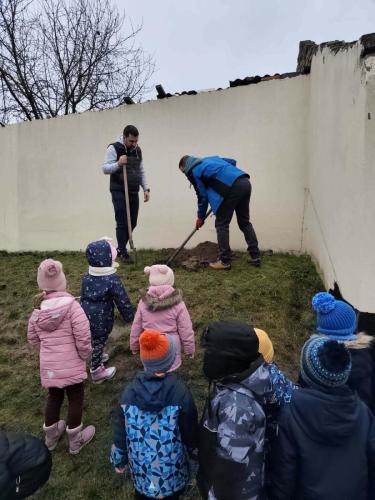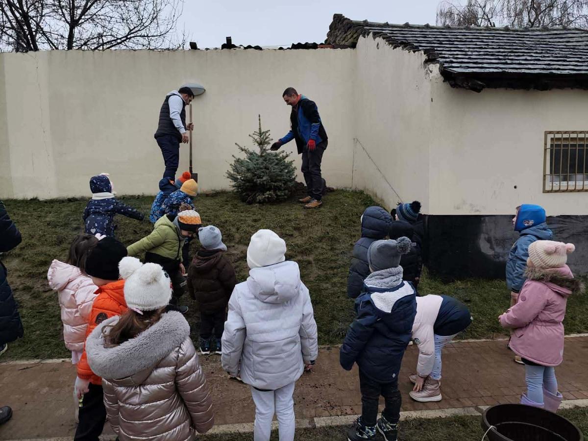 A Mazsola csoport a „Várakozás fényei” című projekt keretében az elmúlt időszakban szeretettel és gondoskodással nevelte a szülőktől kapott fenyőfát. Ma pedig két édesapa segítségével közös élménnyé vált a fa kiültetése az óvoda udvarára, ahol tovább növekedhet, emlékeztetve az összefogás és a várakozás csendes örömére.