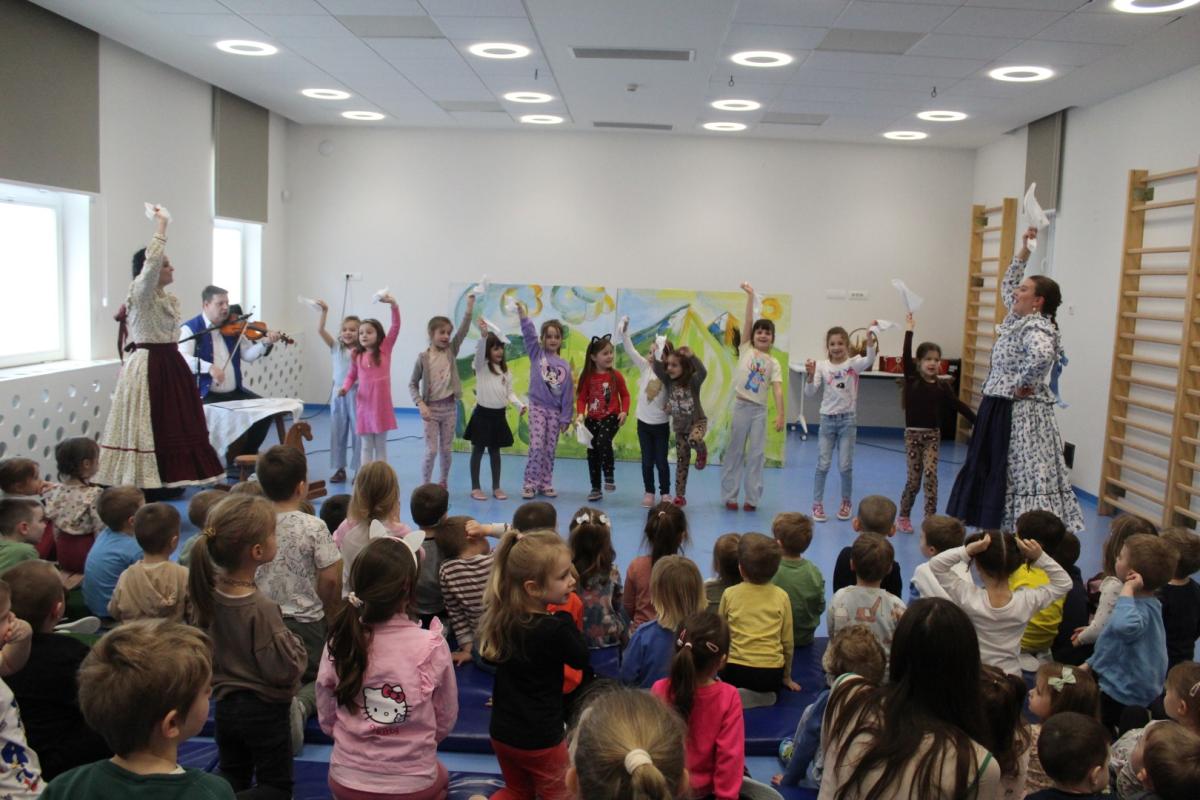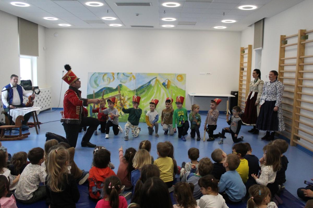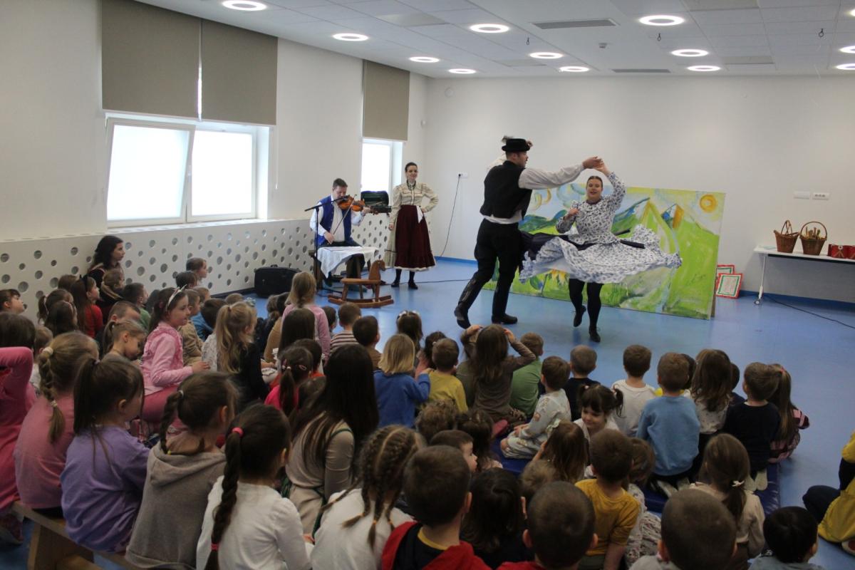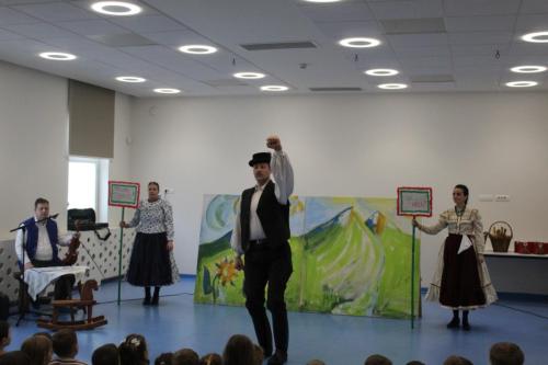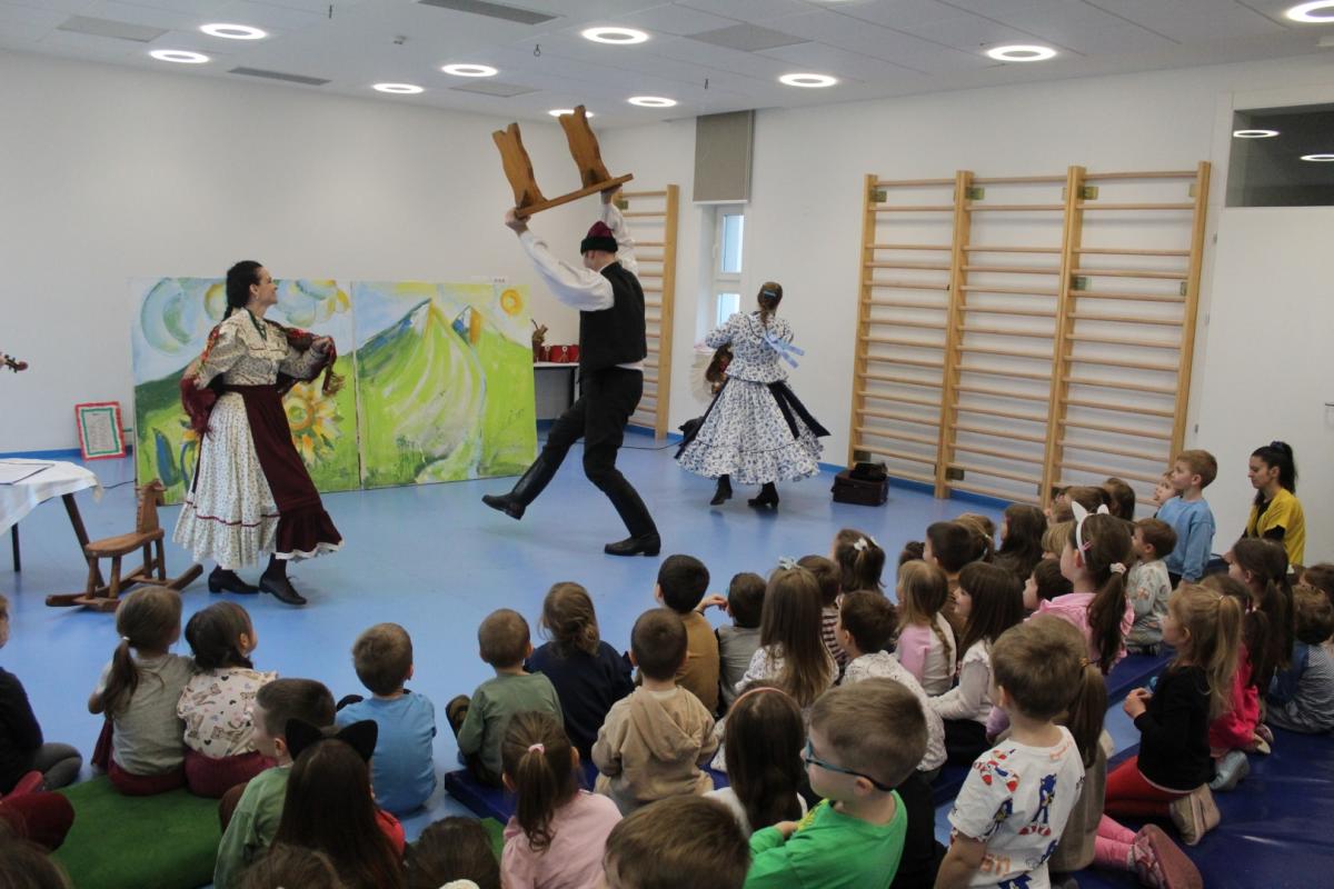 A Falu Kompánia társulata Huszárgyerek, huszárgyerek című előadásával látogatott el óvodánkba. A darab Petőfi Sándor meséjén keresztül, játékos formában ismerteti meg a gyermekeket az 1848–49-es forradalom és szabadságharc eszméjével. A zenével, tánccal és humorral átszőtt történet különlegessége, hogy a művészek a pantomim eszközeit is felhasználják, és a közös játékba magukat a gyerekeket is bevonják, így az előadás igazi élménnyé válik a kis nézők számára.